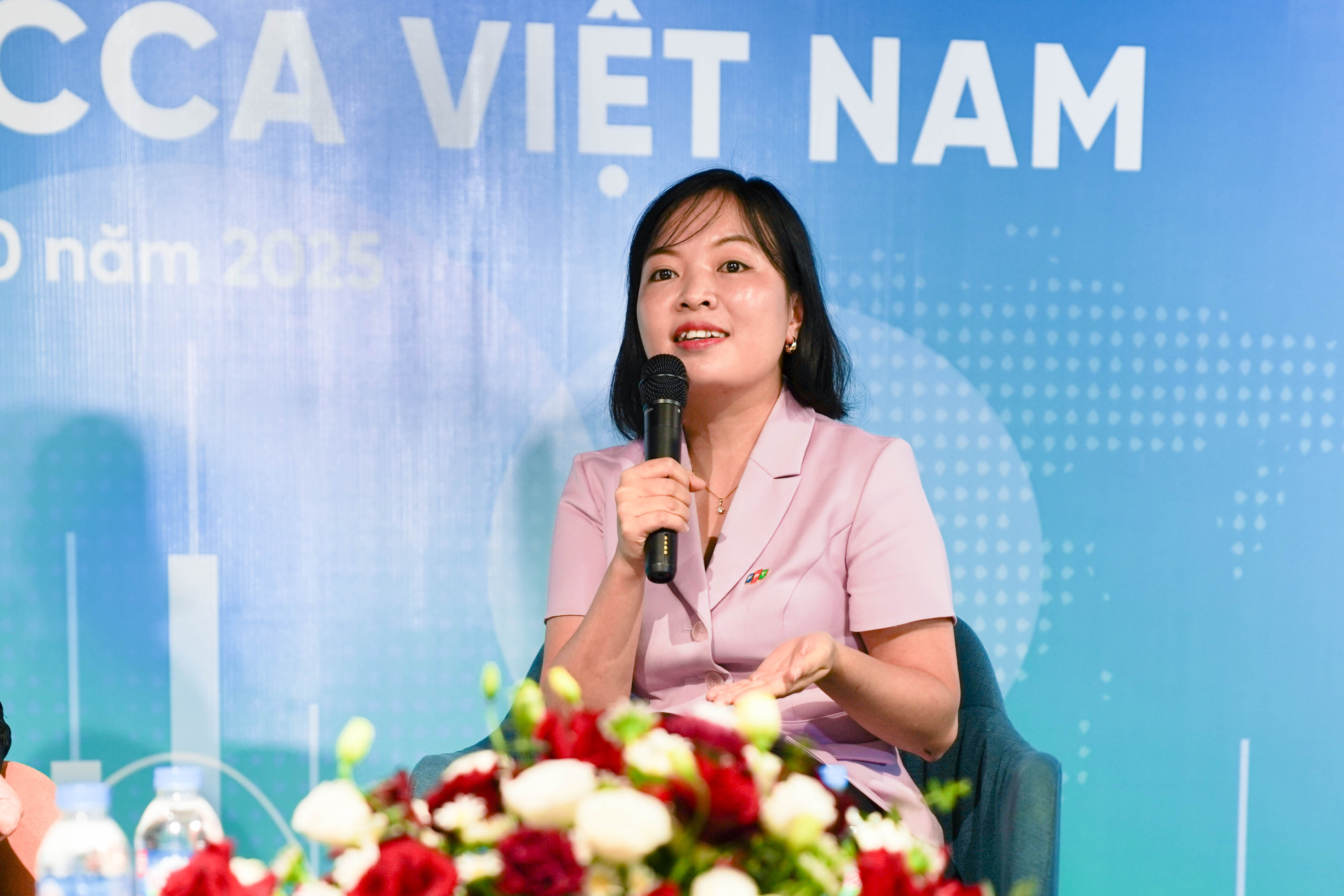 Bà Trương Minh Trang – Giám đốc Khối Nghiệp vụ Doanh nghiệp FPT Digital, Tập đoàn FPT chia sẻ tại phiên thảo luận.